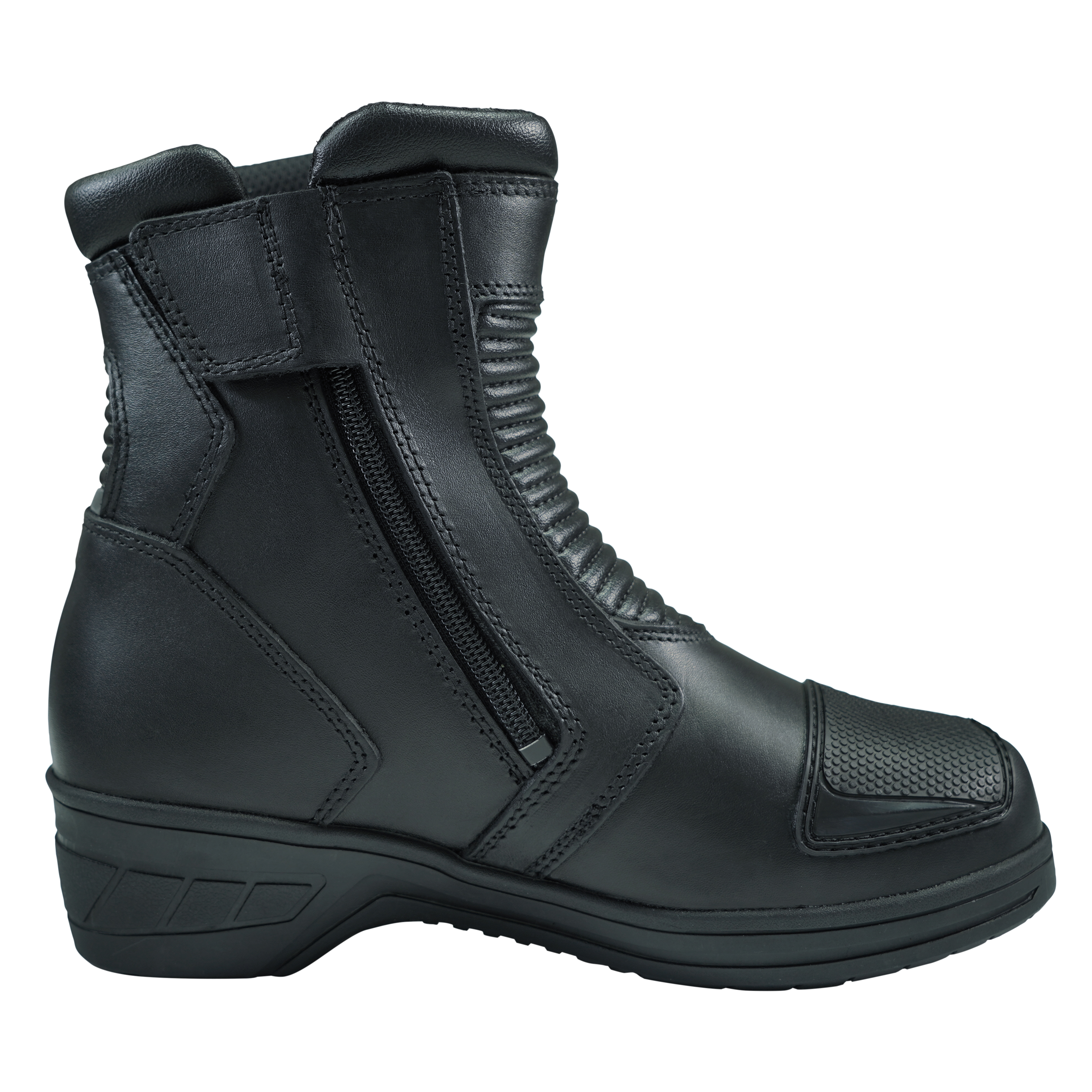 - innen und außen erhöhte, verstärkte und schnittfeste Sohle.