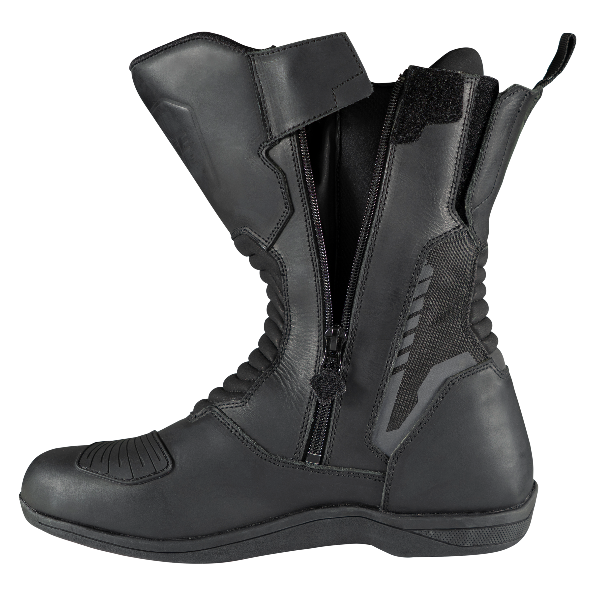 - 2 seitliche Reißverschlüsse mit Lederabdeckung für komfortablen Einstieg,