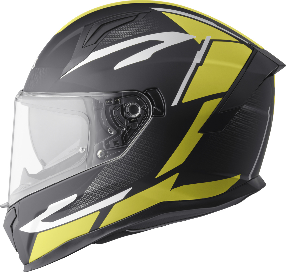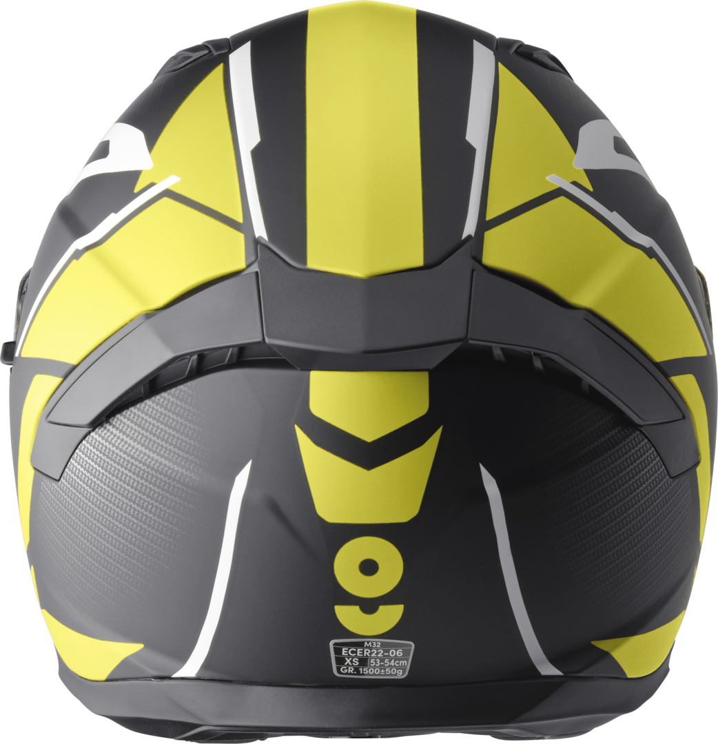 - Integralhelm aus Polycarbonat . Prüfnorm ECE 22.06 Homologation . Futter und Wangenpolster aus 100% Polyester . Klares kratzfestes Schnellwechselvisier mit Arretierung und Anpressautomattik . Integriertes Sonnenvisier zum herunterklappen . Ratschenverschluss / Microlock . Pinlock® vorbereitet . Kopf- und Kinnbelüftung . Spoiler hinten mit Luftauslass . Separat austrennbares anitseptisches waschbares Wangenpolster und Futter . Brillenkanal . 1 Aussenschalengrösse . 3 Innnenschalengrössen